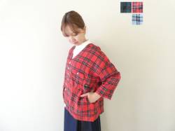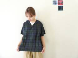 - 快晴堂(かいせいどう) タータンチェック/エバーグリーンWide丸衿/タブ・半袖ワンピース