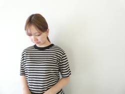 - mao made(マオメイド) ベルギーリネンハーフスリーブ細しましまTEE