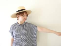 - homspun(ホームスパン) ギンガム&無地パフスリーブブラウス