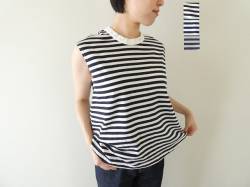 - prit(プリット) 30/1リサイクルムラ糸天竺ボーダーノースリーブフレアプルオーバー