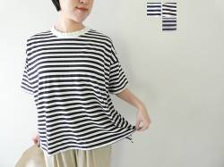 - prit(プリット) 30/1リサイクルムラ糸天竺ボーダー5分袖ワイドTシャツ