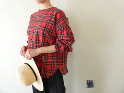 - SSC 綿麻タータンチェックルーン袖ブラウス