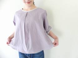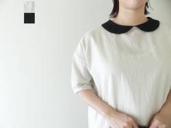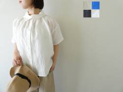 - SSC 60リネン重ね衿5分袖ビッグブラウス