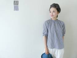 - SSC ストライプ衿リボン通し5分袖ブラウス