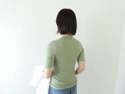 - homspun(ホームスパン) 丸胴テレコ5分袖タートルプルオーバー
