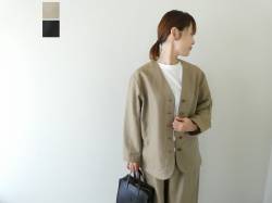 - homspun(ホームスパン) ウールリネンノーカラージャケット